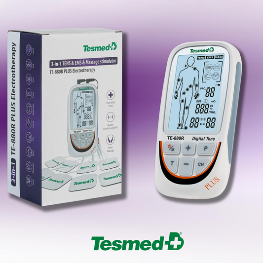 TESMED TE-880R Plus: Wiederaufladbarer Muskelelektrostimulator, EMS, TENS, Massagefunktion: 73 Programme, davon 2 anpassbar – Funktioniert mit 8 Elektroden
